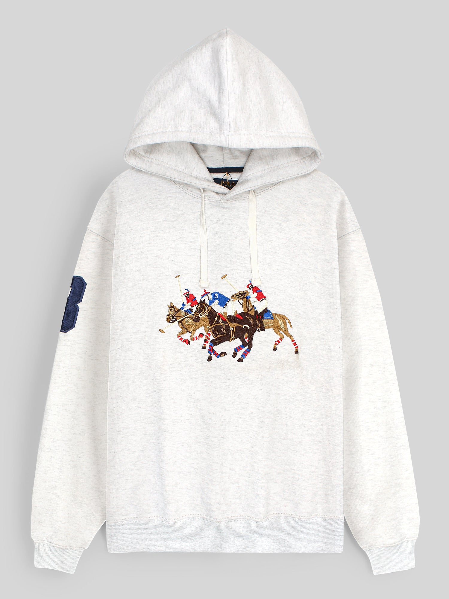 premium Rl triple pony Fleece hoodie (light heather grey)