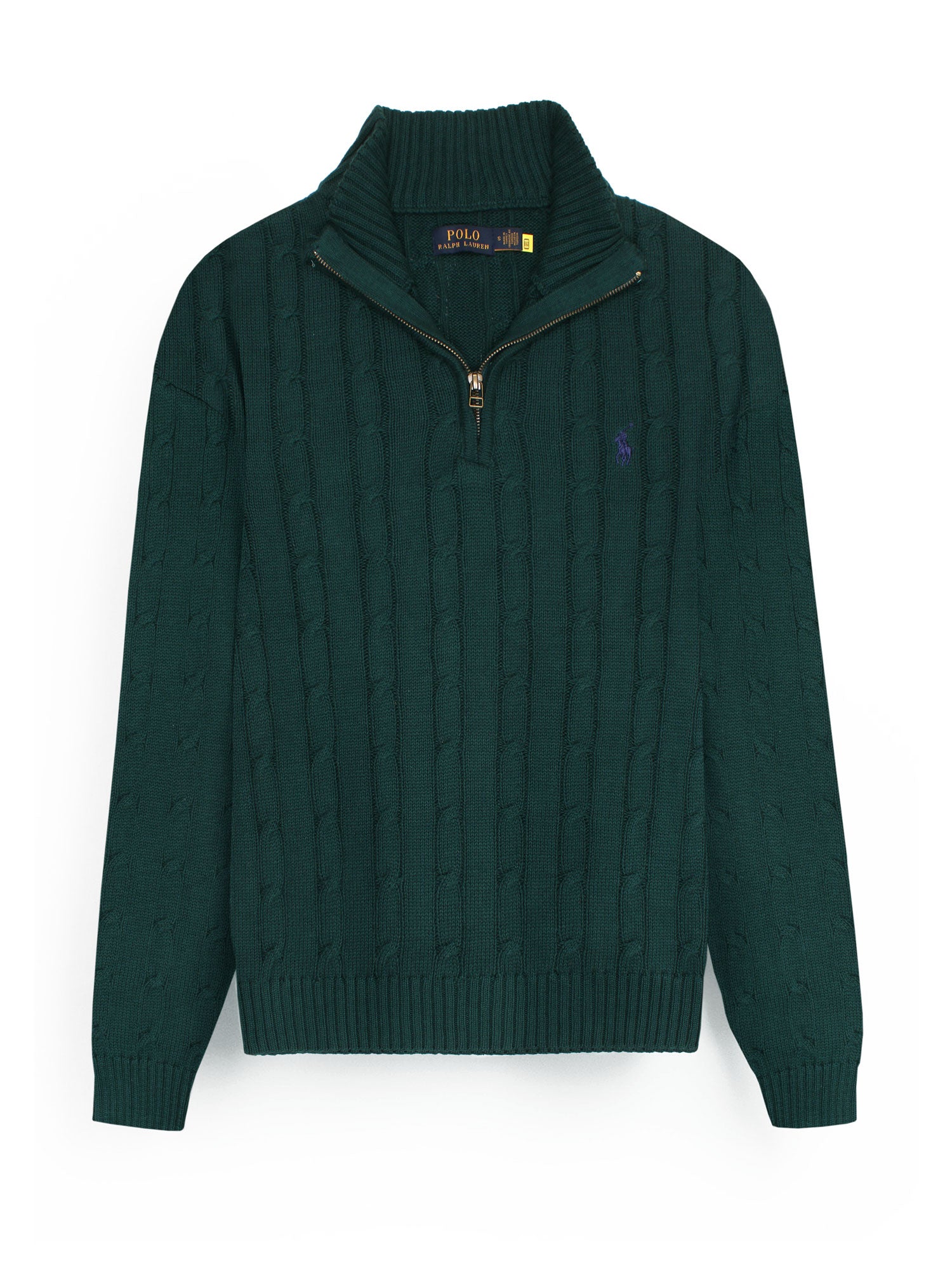 RL Cable-Knit Half Zipper Cotton Sweater (green)