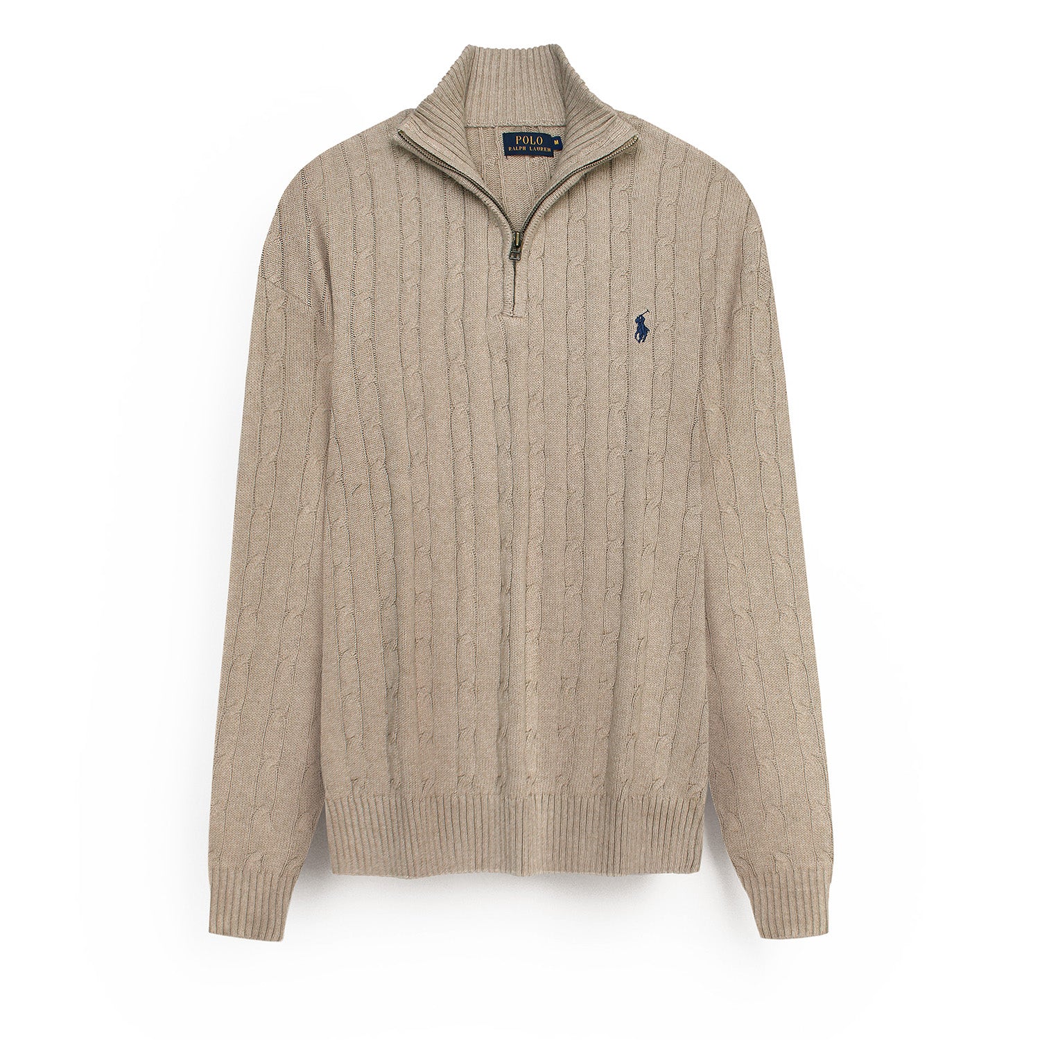 RL Cable-Knit Half Zipper Cotton Sweater (light brown)