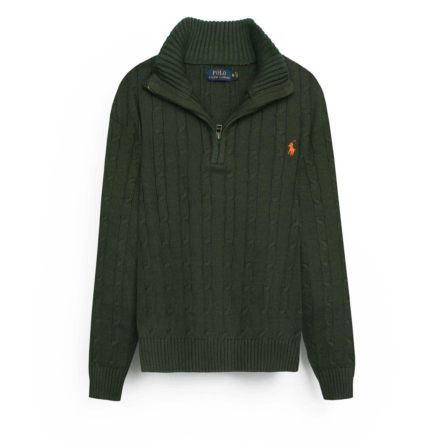 RL Cable-Knit Half Zipper Cotton Sweater (olive green)