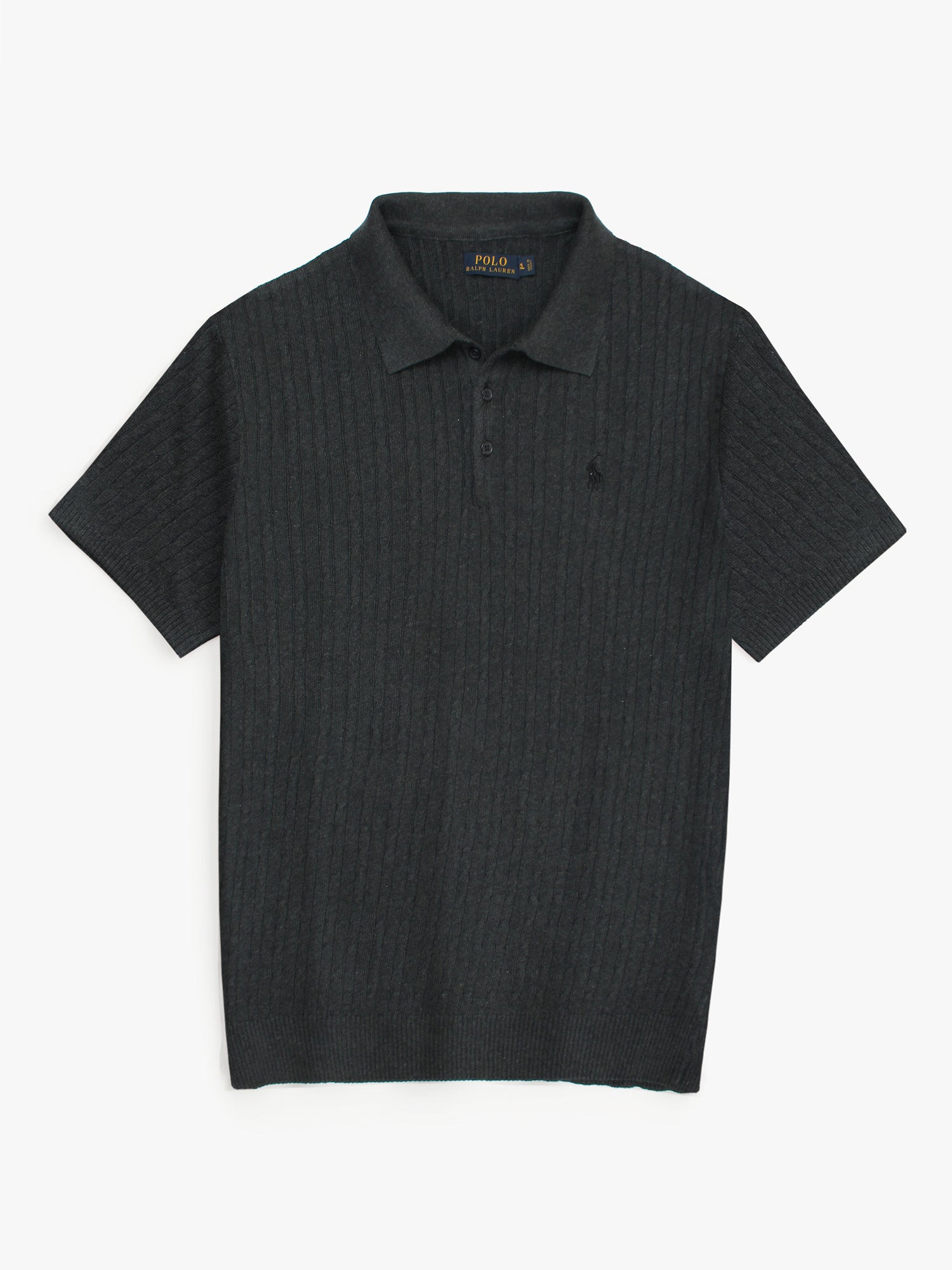 RL cable knit polo-charcoal grey