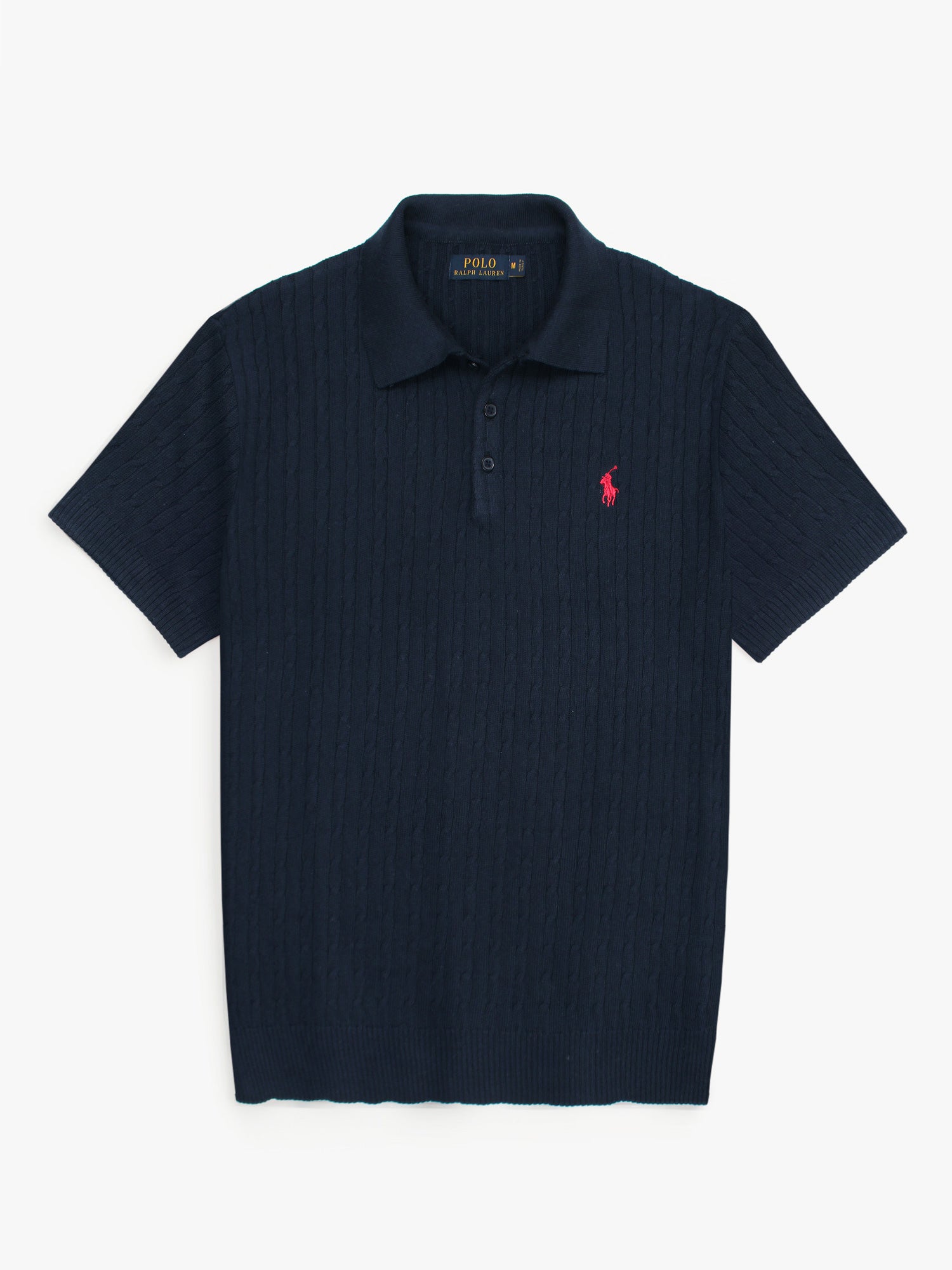 RL Cable-Knit Half Zipper Cotton Sweater (camel brown)