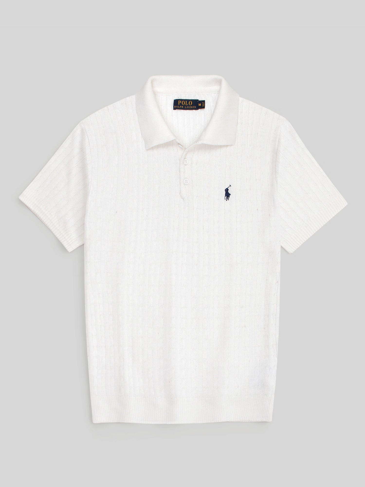 RL cable knit polo-white