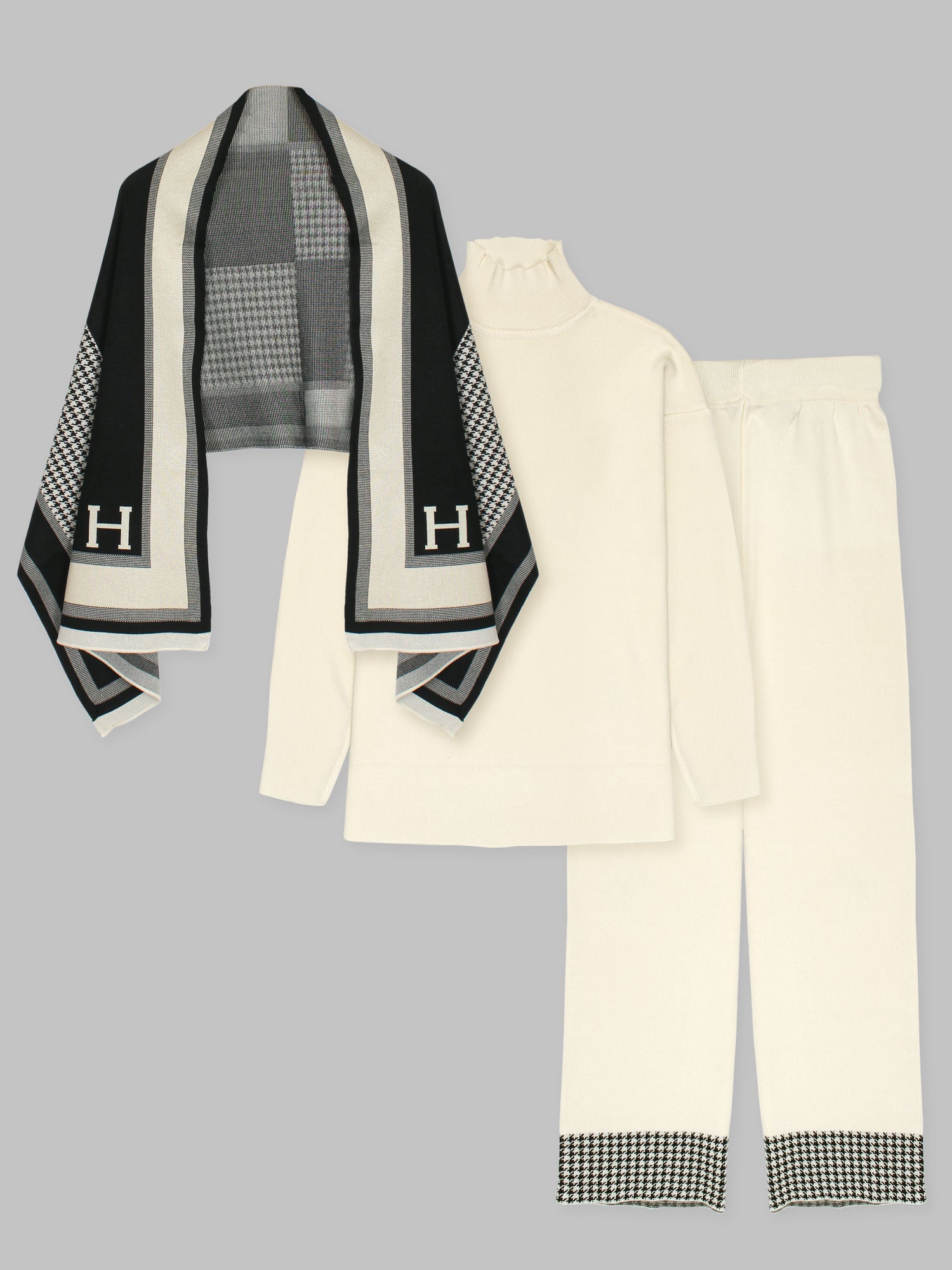Set includes: Turtleneck Top, Wide-Leg Trousers & Monogram Shawl
