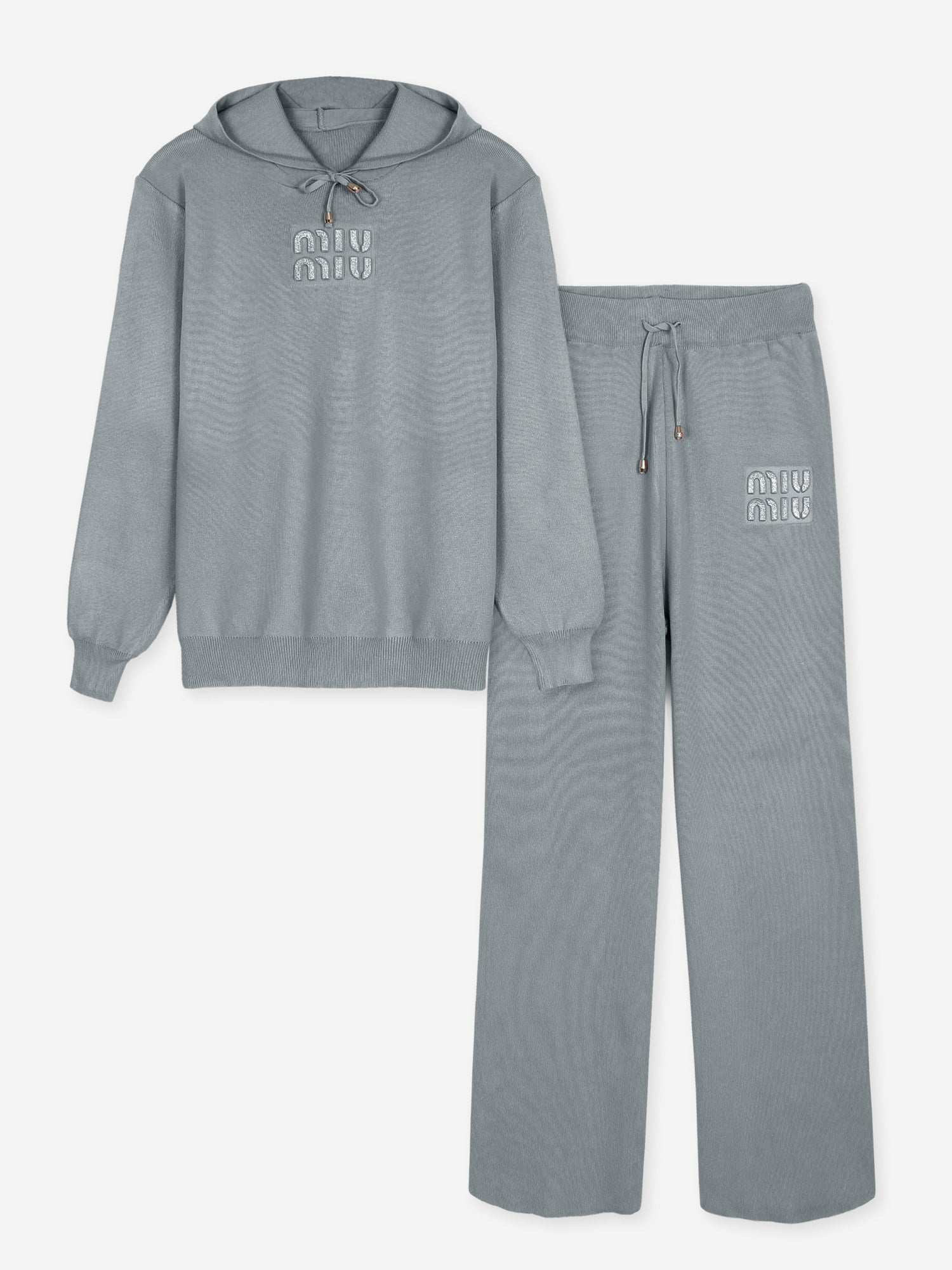 Set includes: Crystal-Embellished Hoodie & Straight-Leg Trousers