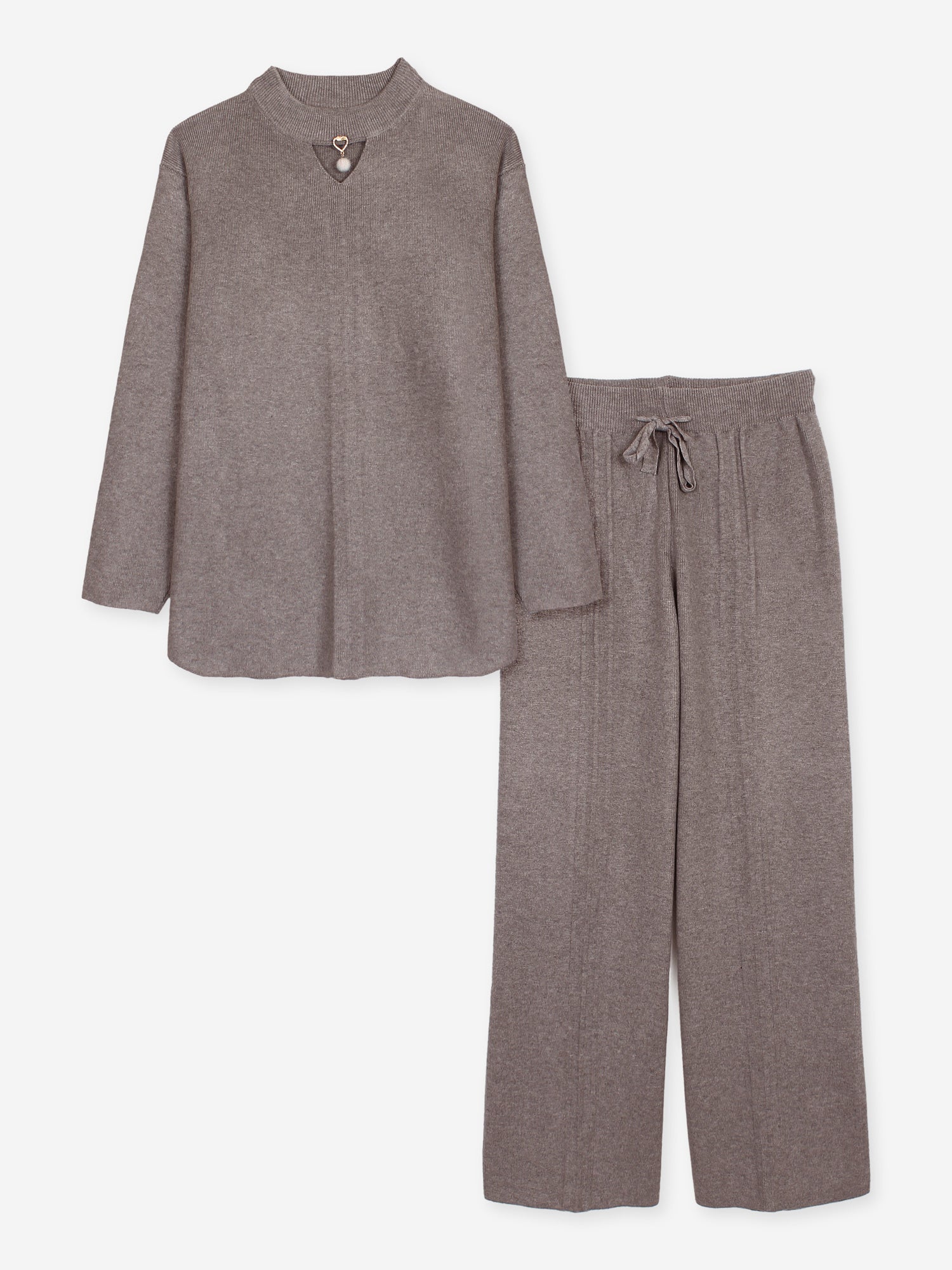 • Set includes: Mock-Neck Top with Heart Charm & Wide-Leg Trousers