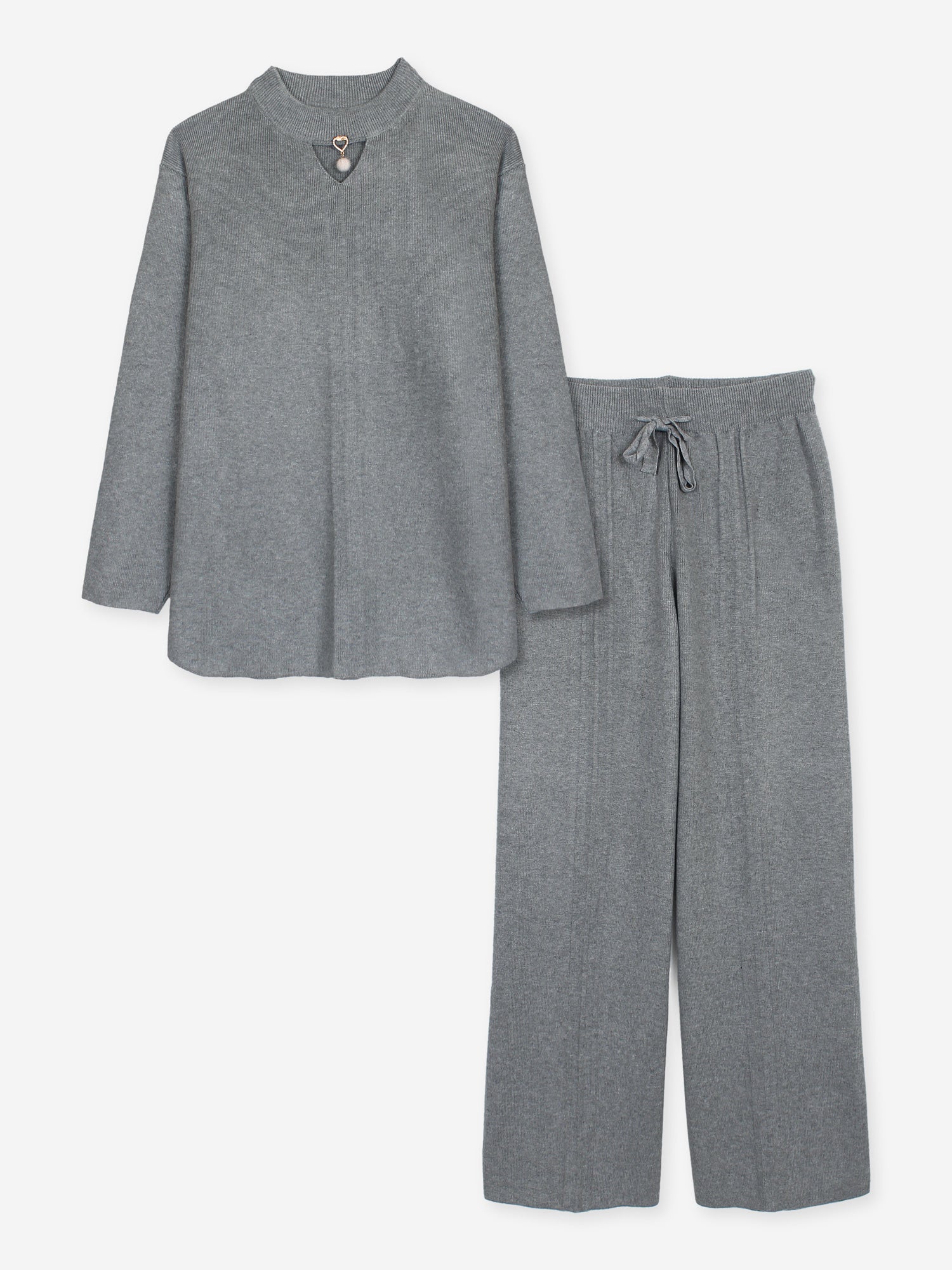Set includes: Mock-Neck Top with Heart Charm & Wide-Leg Trousers